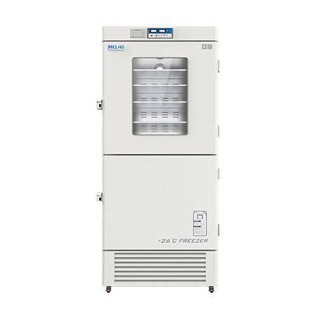 Meling 2℃~8℃/-10℃~-26℃ Medical grade refrigerator combo YCD-EL519 is designed with separate control of refrigeration and freezing. It comes with two compressors and separate control of upper refrigeration chamber and lower freezer chamber. This fridge freezer combo adopts Freon-free refrigeration, which is environmentally friendly and energy-saving. And it comes with updated thermal insulation with CFC-free polyurethane foam technology and thicker insulation layer. The high-precision computerized temperature control helps you to set the upper temperature in a range of 2℃~8℃ and lower temperature in a range of -10℃~-26℃. Meling 2℃~8℃/-10℃~-26℃ Medical Refrigerator & Freezer YCD-EL519 is specially designed for plasma, reagent and other medical and laboratory materials storage.