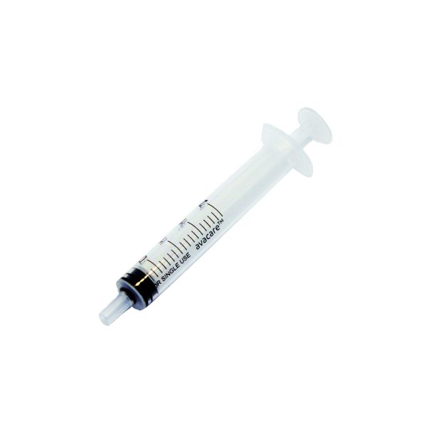 Syringe, 2ML, 3 part, without needle, Luer slip.
