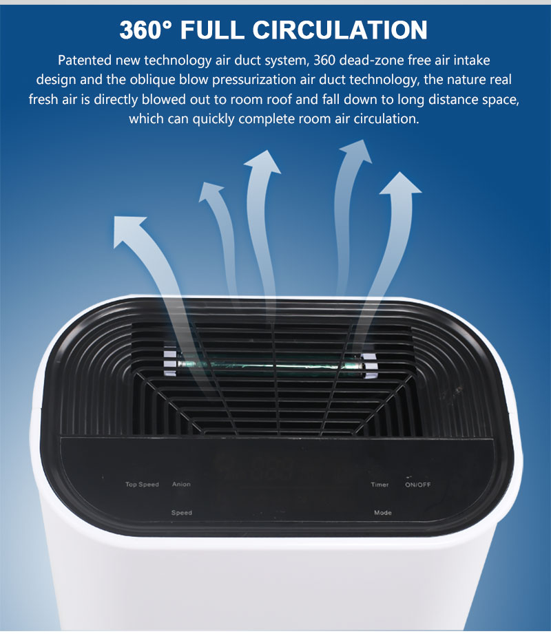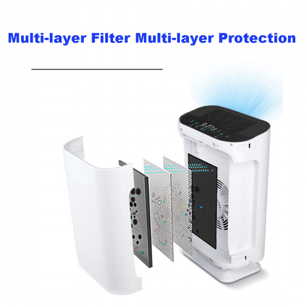 6-IN-1 Filtration with its HEPA filter and 150m3h CADR, it efficiently removes PM2.5 dust, bacteria, germs, pollen, mites, smoke, pet dander, mould etc, non-woven filter effectively removes hair.