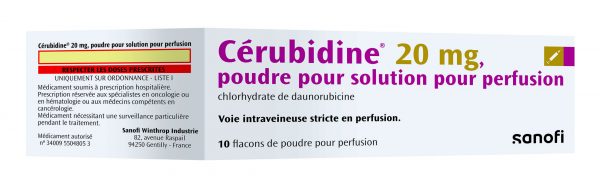 Daunorubucin CERUBIDIN 20mg 10 vialsFR Access Price* subject to acceptance of Sanofi’s terms of saleBelow 25°C