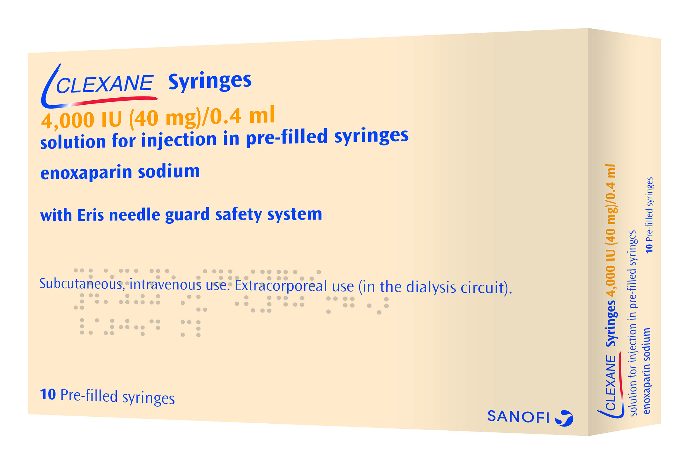 Enoxaparin CLEXANE 40MG 10 pre-filled syringes EN Access Price* subject to acceptance of Sanofi’s terms of sale Below 25°C