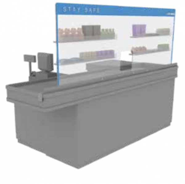 -COUNTERSHIELD is fixed onto the selling counter with a double side tape (tape comes in the box). The counter shield has a rectangular opening at cashier’s desk level to allow payment procedure to take place.