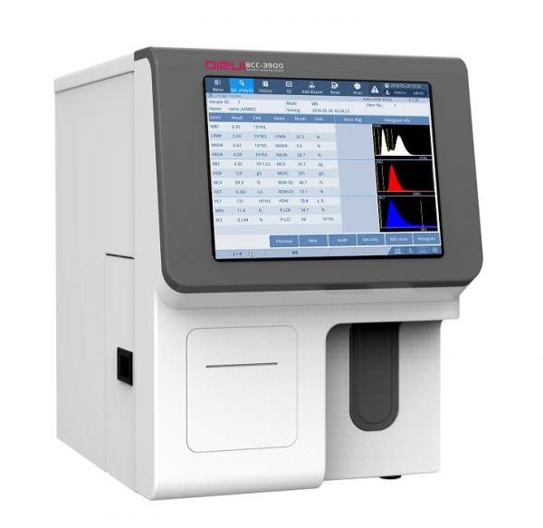 blood sample with impedance method and have 3-diff of white blood cells, test the hemoglobin concentration with colorimetric method and calculate hemocyte related parameters.