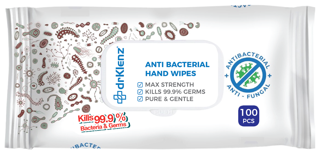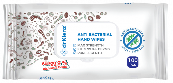 - drKlenz Antibacterial Wipes kill 99.9% of germs and also acts as a disinfectant and sanitiser all in one.
