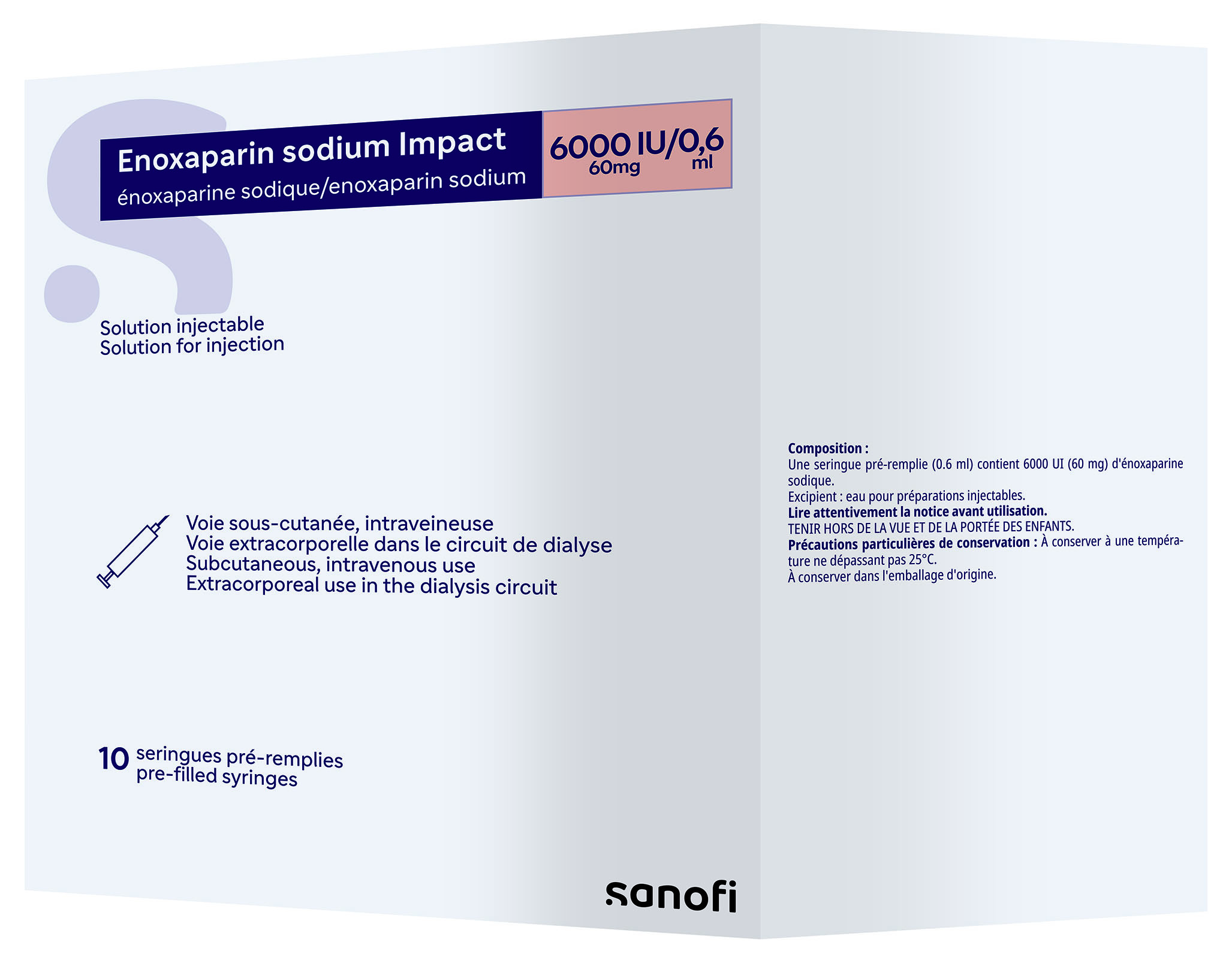 ENOXAPARIN NA IMPACT 60MG/0.6ML INJ 10 pre-filled pensEN-FR Access Price* subject to acceptance of Sanofi’s terms of saleBelow 25°C
