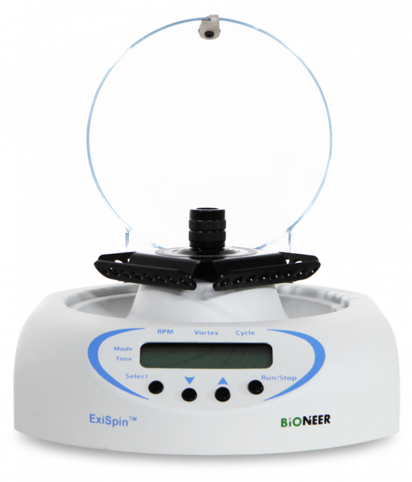 ExiSpin™ has both the ability to centrifuge and vortex and is very economical as it is not necessary to buy all two devices . Both rotors for 8-strip PCR tube and 1.5 ml microtubecentrifugal tube provided for ExiSpin™, along with ones for PCR tubes to reduce cost to buy additional accessories.