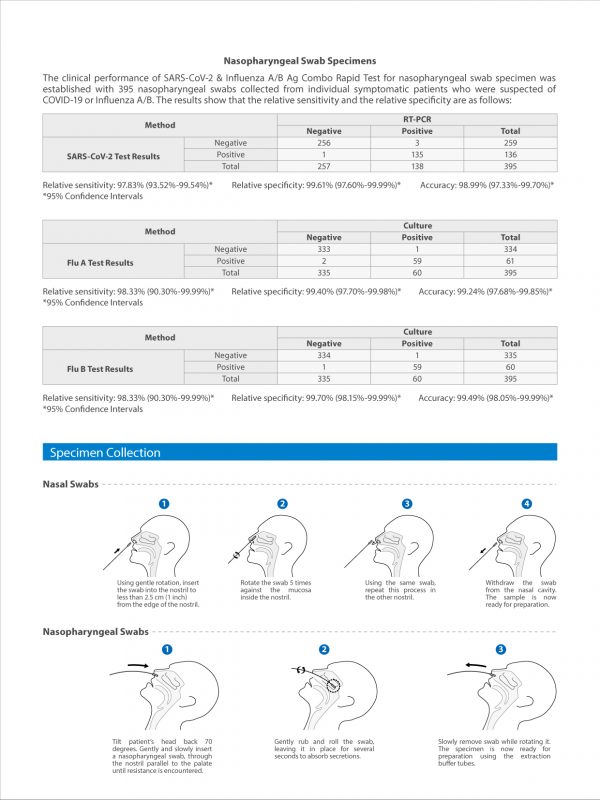 The SARS-CoV-2&Influenza A/B Ag Combo Rapid Test is a Lateral flow chromatographic immunoassay for the qualitative and differential detection of SARS-CoV-2 , Influenza virus type A and Type B nucleprotein antigens in nasal swab and nasopharyngeal swab specimens directly from individuals who are suspected of influenza or SARS-CoV-2 by their healthcare provider