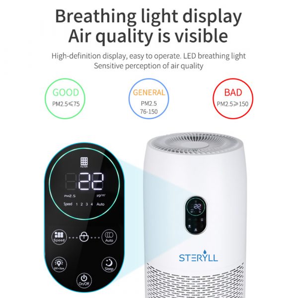Suitable for large area purification of indoor spaces. 5 stage filtration HEPA Purification makes the air in the home fresh and natural. Low noise quietly guards your family’s health, noise level in sleep mode is as low as 32dB.