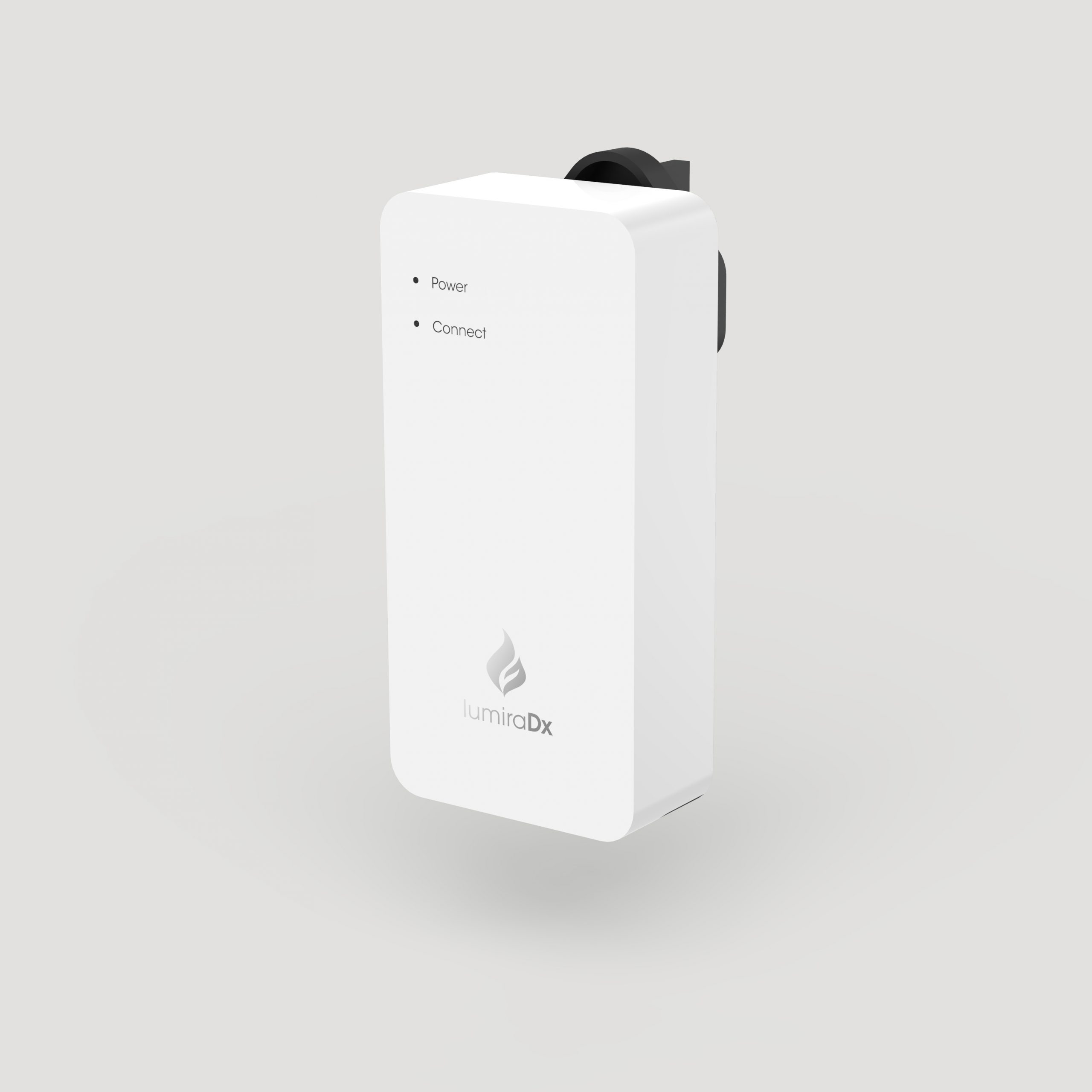 The Connect Hub is a hardware product that plugs directly into a power supply and synchronizes data between the LumiraDx Instrument(s) and LumiraDx Connect Servers