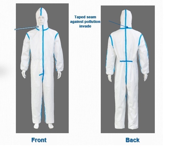 - Disposable medical protective suit with hood, body (no foot, no gloves, no goggles, no mask), non-sterile
