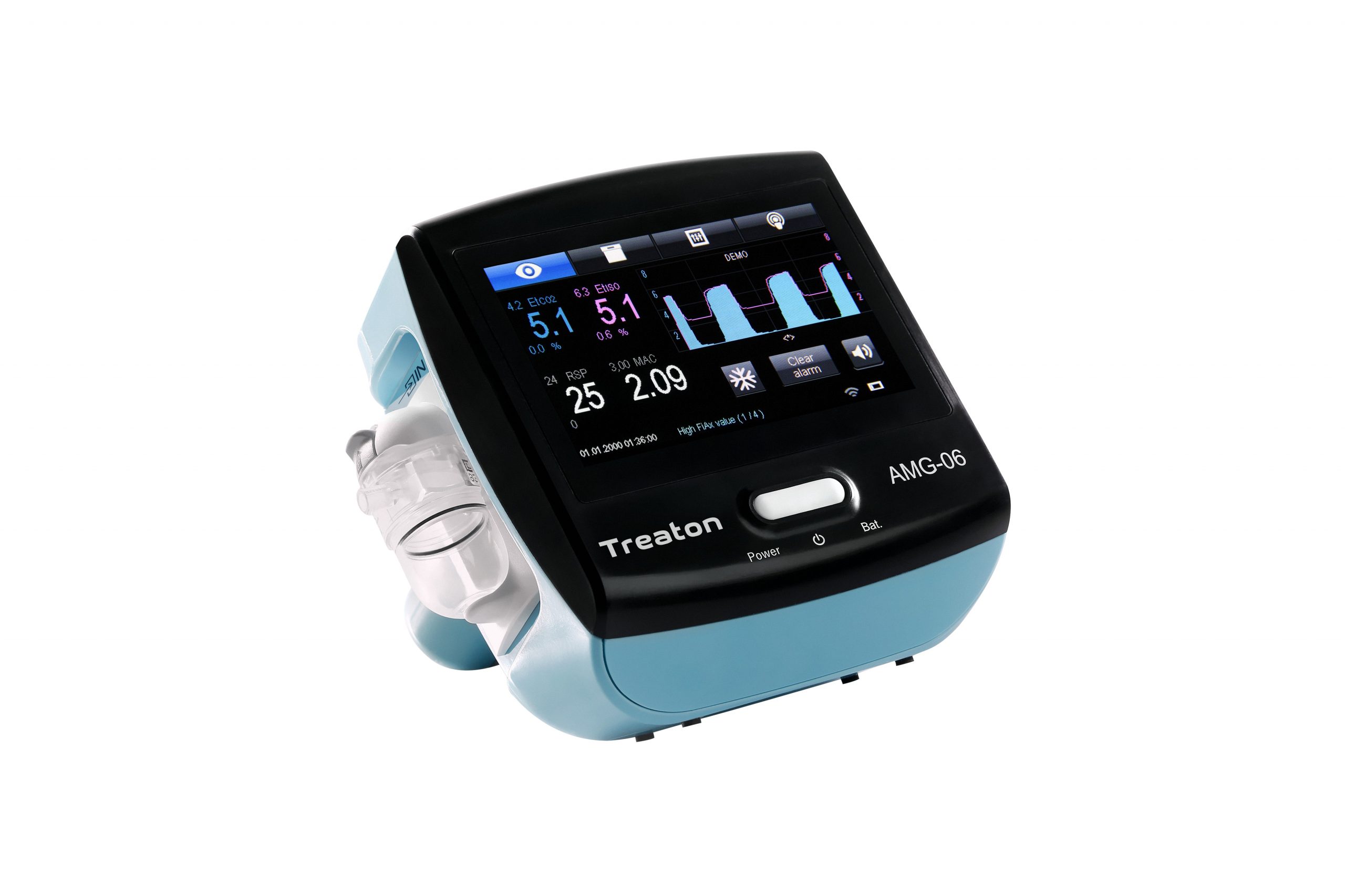 Multigas Analyzer AMG-06 is intended for continuous non-invasive side-stream monitoring of СО2 and anesthetics concentration in inspired and expired gases. The device also determines RSP, apnea, MAC index and measures atmospheric pressure under the conditions of operation rooms and wards when providing anesthetic support. Features: High Measurement accuracy; Manual selection of the anesthetic type, automatic detection of the incorrect choice; Accurate anesthetic concentration measurement enables to make safe anesthesia, especially using low-flow method; Built-in battery; Simple design, light weight, compact; Intuitive interface, sensitive touchscreen; Maintenance free