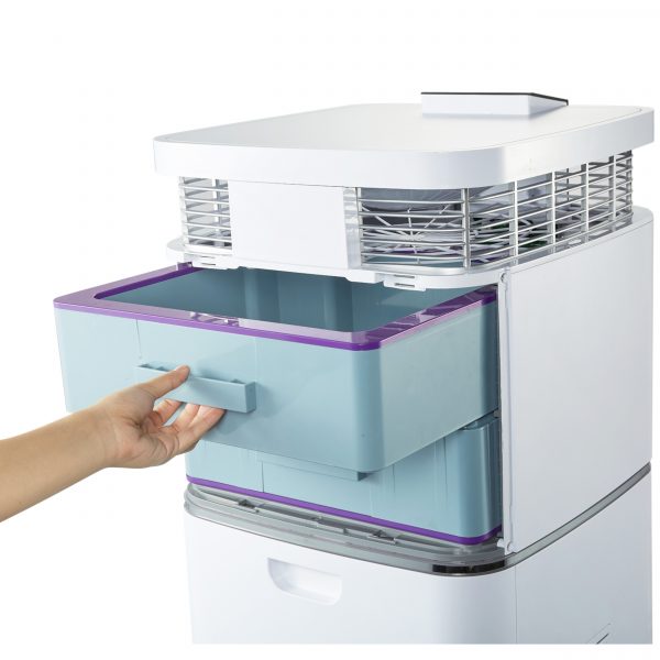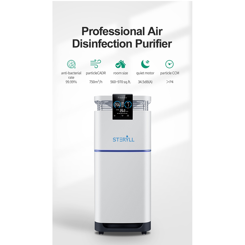 Suitable for large room, cafeteria, hospital etc. High air-flow rate with HEPA filter and 4 UV lamp which directly kills 99.99% virus and bacteria. Wifi enabled and can be connected with your Apple and Android devices. Smart laser sensor detects air every 0.1 seconds.