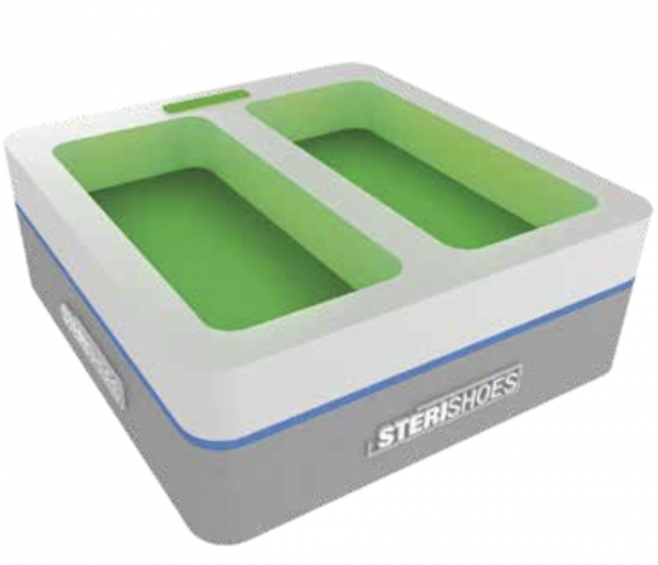 A vital appliance dedicated to sterilize one's shoes from surface contamination before entering into a controlled clean environment.